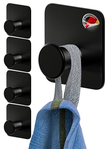 HouseUp handdukshållare utan borrning, uppsättning av 5 självhäftande krokar svart handdukshållare badrum, rostfritt stål krokar självhäftande, väggkrokar handdukskrokar