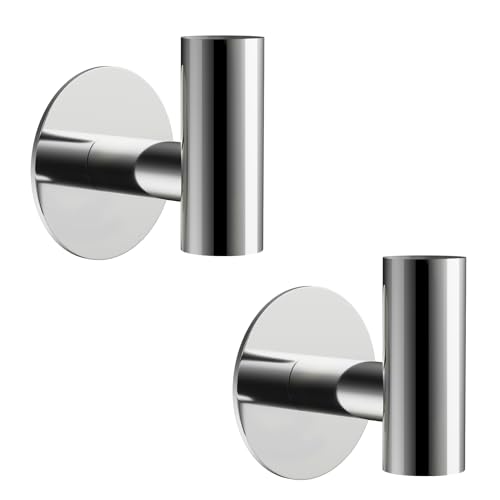 YUET 2 st självhäftande handdukskrokar, SUS 304 rostfritt stål, väggkrokar, självhäftande krokar, badrum, kök, handdukshållare, klädkrokar, utan borrning, för hem, kontor (polerad krom)