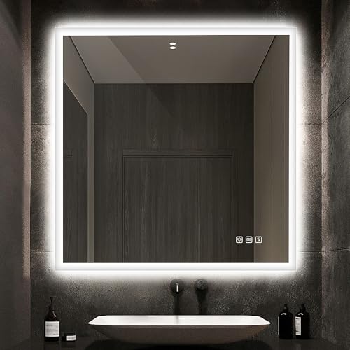 STARLEAD 800 x 800 mm badrum-spegel med LED-lampor, badrum-LED-väggspegel med Bluetooth, anti-dimma, 3 färger dimbar, minnesfunktion, härdat glas CRI90+, IP44 LED-spegel