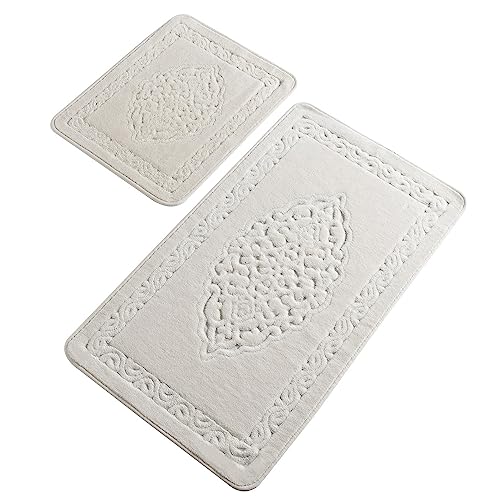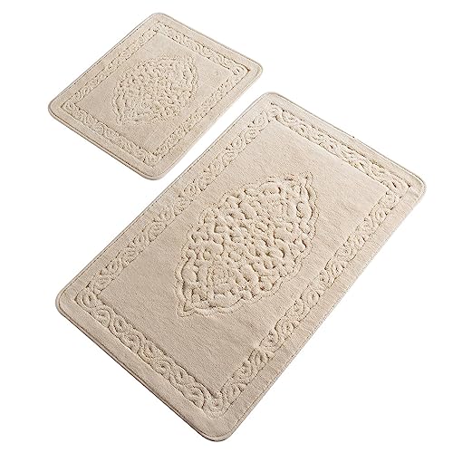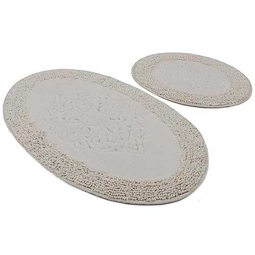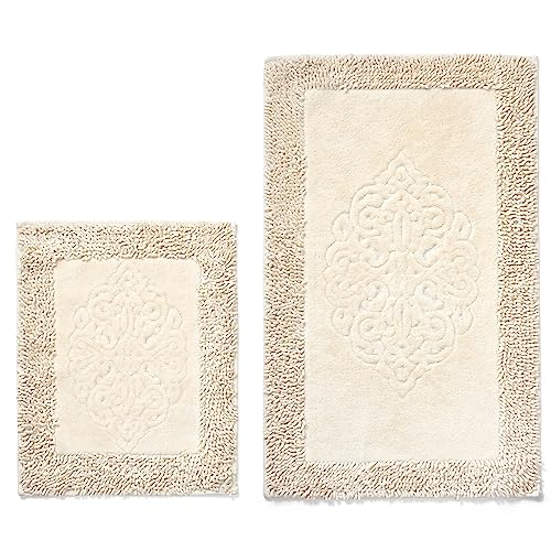 Emma Barclay 100% bomull ögla tvinnad 2 delar badrum, bad pedastal matta set kräm, en storlek