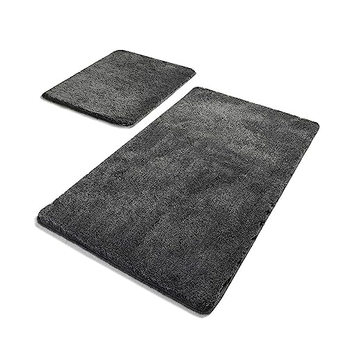 Halkfri toalettmatta förtjockad piedestal matta för toalett absorberande ultramjuk badrum toalett matta fluffig mikrofiber badmatta, snabbtorkande, maskintvättbar - 50 x 60cm U (Mörkgrå)