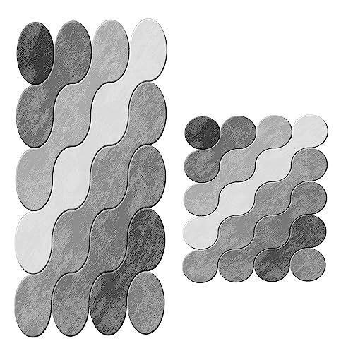 M MOFIT Självhäftande väggplattor i 3D-tegel, kakelklistermärken med marmorutseende för badrum, vattentäta, matta, självhäftande plattor, kök, Peel & Stick, värmebeständiga (10ark, grå/silver)