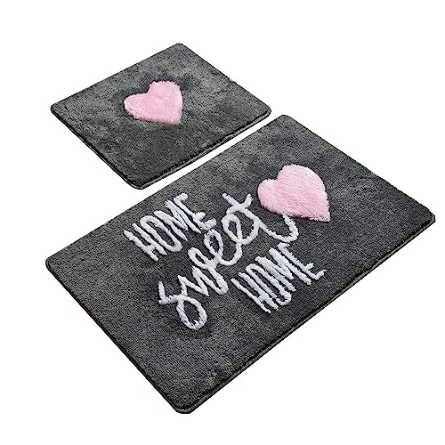 Badrum matta set (2 st) hem sweet home bakgrund mörkgrå