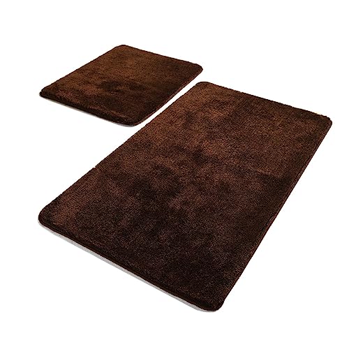 Gaveno Cavailia Lyxigt 2-delat badrumsmatteset, halkfri, extra absorberande, 100 % mikrofiber chenille, badrum WC matta, normal passform (50 x 80 cm, 50 x 40 cm), mörkröd, mikrofiber