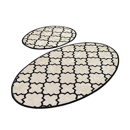 Badrum matta set (2 stycken) vit orange och rödbrun