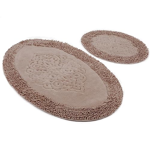 JARITTO Badrum halkfri matta badmatta Chenille mikrofiber golvmatta mjuk maskintvättbar absorberande för dusch toalett 50 x 80 cm (brun)