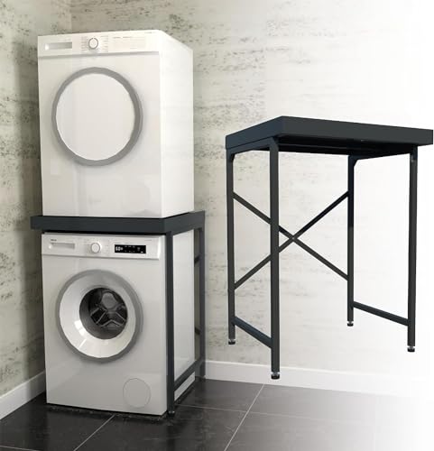 Norvic® Mellankonstruktion | universellt stackingkit med anti-tippbas för tvättmaskin, torktumlare, diskmaskin – platsbesparande bas för badrum, tvättstuga, tvättstuga (grå)