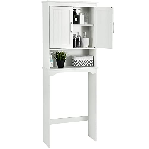 LIFEZEAL Garderob över toalett, Högbadrumsmöbler, Ställning med 2 hindrade dörrar Justerbar, Arrangör för badrum, Tvättmaskin, 63 x 23 x 168 cm