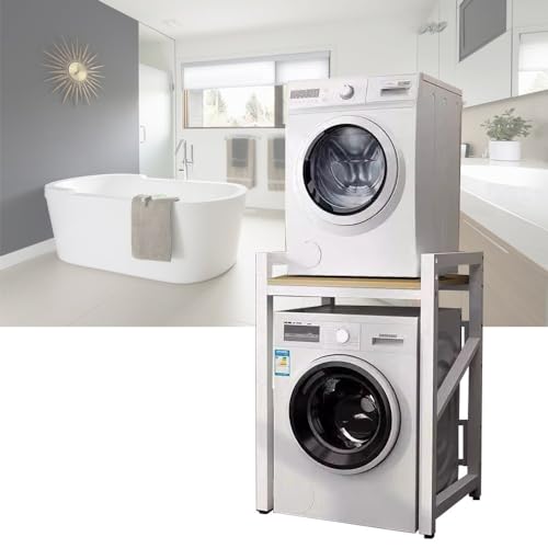 JXZ Tvättmaskinsstativ, 3 höjdjusterbara, stapelbara kit för tvättmaskin och torktumlare, lastkapacitet 300 kg för badrum, tvättstuga (vit F)