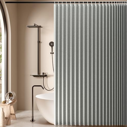 Jubilantex Fällbart linne duschdraperi för badrum grå vattentätt duschdraperi 1 panel med 14 metallöljetter och 1 knytband för hotell, 178 cm x 178 cm