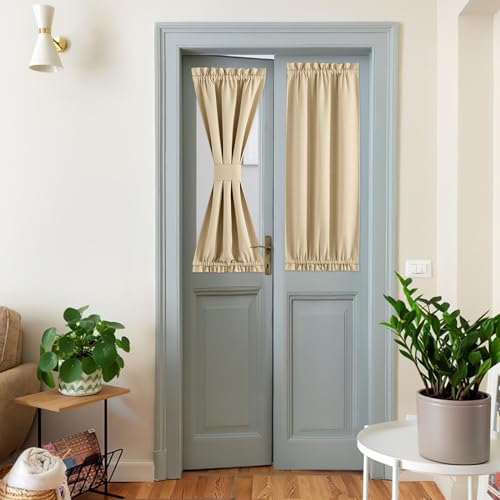 NICETOWN Franska dörrgardiner för litet fönster, stångficka kort framsidoljusgardin, värmeisolerat köksdörrskydd litet för badrum, 1 panel havregrynsgröd, 63 cm x 102 cm)