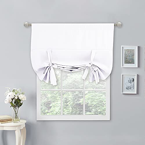 NICETOWN Ren vit knytgardin – husbil mörkläggningsgardin för halvfönster romersk skugga bondgård badrum fönsterkappor för kök, 1 panel, 102 cm bred x 137 cm längd