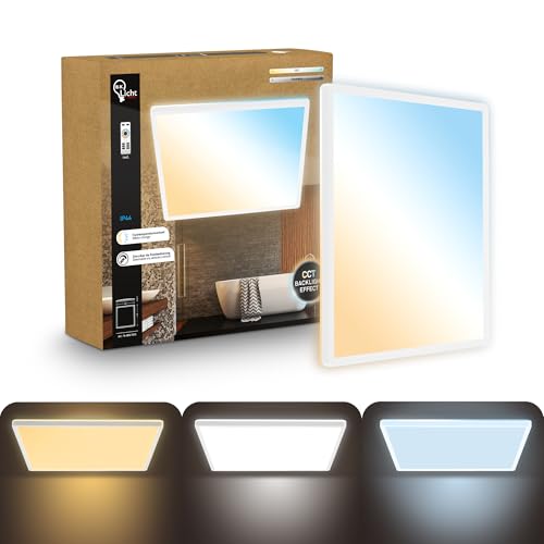 B.K.Licht Platt LED-panel med fjärrkontroll, CCT justerbar från varmt till dagsljus, justerbar intensitet, IP44, badrum, kökskrona, vardagsrumskrona, 42 x 42 x 3 cm, vit