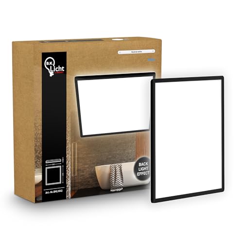 B.K.Licht Platt LED-panel med indirekt belysning, neutralt vitt ljus, IP44-skydd, badrum, kökskrona, ljuskrona, vardagsrum, 24 x 24 x 3 cm, svart