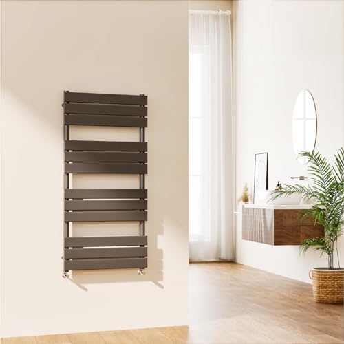 EMKE Handduksskena radiator antracit grå – modern platt panel badrum stege radiator väggmonterad badrum handduksradiator för vardagsrum och kök 1200 x 500 mm