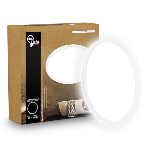 B.K.Licht Platt LED-panel med indirekt belysning, neutralt vitt ljus, IP44-skydd, badrum, kökskrona, ljuskrona, vardagsrum, 29 x 3 cm, vit