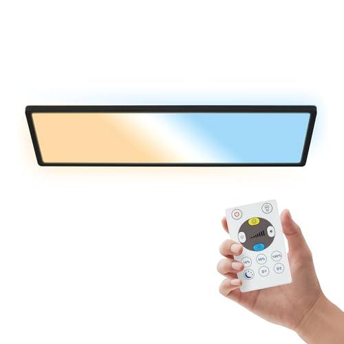 B.K.Licht Platt LED-panel med fjärrkontroll, CCT justerbar från varmt till dagsljus, justerbar intensitet, IP44, badrum, kökskrona, vardagsrumskrona, 58 x 20 x 3 cm, svart