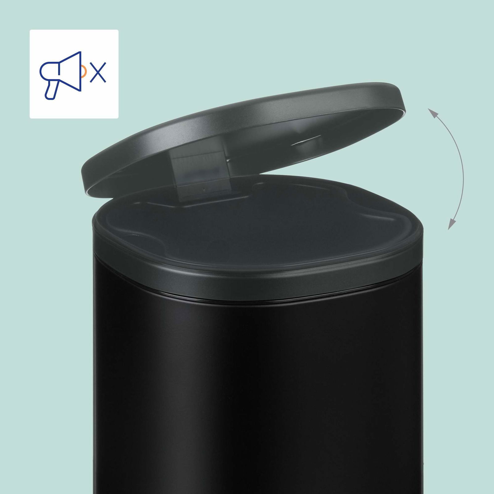 Stardis 3 liters pedalhink rostfritt stål svart matt med automatisk sänkning fällbart lock tyst stängning softclose med inre hink kosmetishink soptunna soptunna badrum
