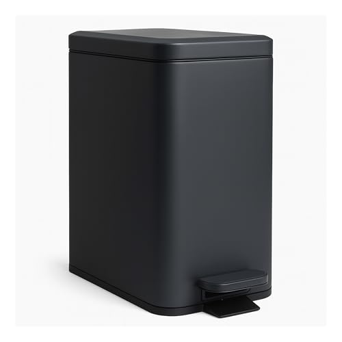 Songmics Sminkbehållare, 6 liter, sopkorg för badrum, liten soptunna, pedal, för små rum, med lock, mjuk stängning, stål, svart LTB590B0602