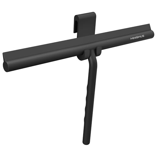 Minism silikonduschskrapa för glasdörrar och fönster – fönsterskrapa för badrum och spegel – ingen borrning, inklusive upphängning – duschskrapa (svart, 33 cm)