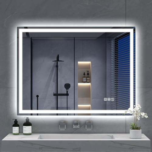 Habison badrumsspegel med belysning, 60 x 80 cm LED-badrumsspegel med touchströmbrytare, dimbar ljusfärg 3 färgtemperatur, minnesfunktion, anti-dimma, LED-spegel badrum med ljus för badrum, toalett