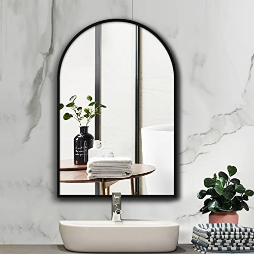 YFZNWHX Stor välvd badrumsspegel, metallram väggspegel, dekorativ spegel, svart/guld/silver/vit, HD-glasspegel, hänger vertikalt, för badrum, sovrum, vardagsrum, hotell, etc.