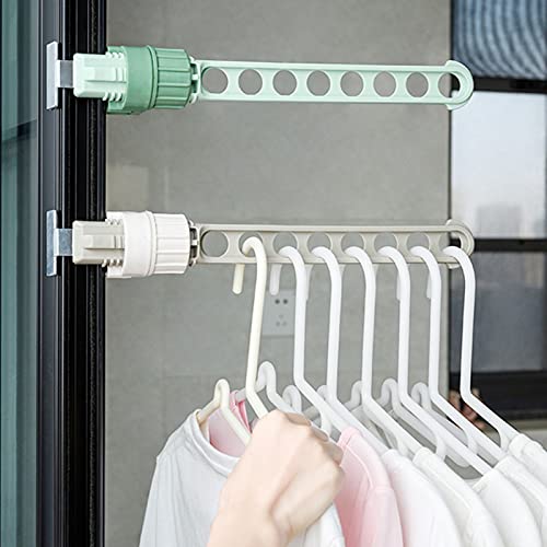 Torkställ för kläder 2-pack bärbar resehängare för hotell hem roterande klämma hängare hållare väggmonterad klädstång för badrum sovrum tvättstuga balkong, grön och grå