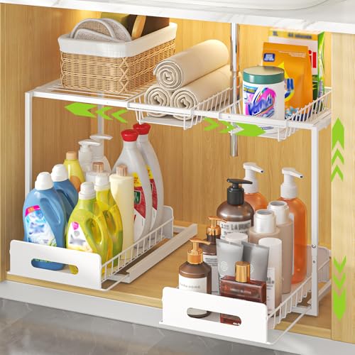 Vtopmart multifunktionell diskbänksförvaring, 2-pack köksskåp, dubbla lager underskåp för diskbänk, kök, badrum, skåp