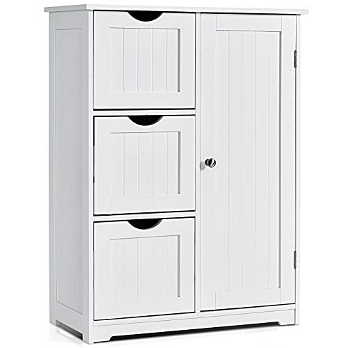 COSTWAY Badrumsskåp, badrumsskåp av trä med 3 lådor och 1 dörr, underskåp med 3 positioner justerbar hylla, förvaringsskåp för vardagsrum, badrum, 60 x 30 x 81 cm (vit)