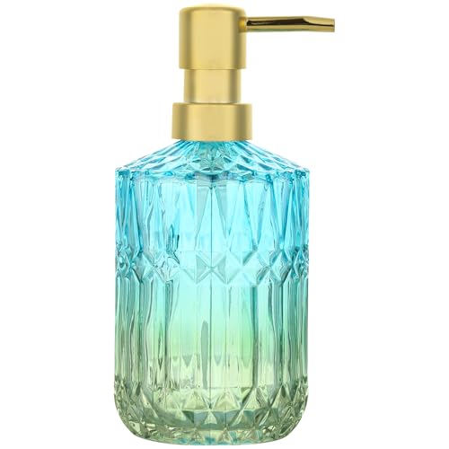 YunNasi Tvålpump i glas med pump, påfyllningsbar flytande handtvålsdispenser för badrumsbänk, diskho (Blågrön)