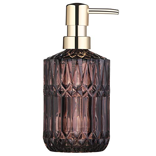 YunNasi Tvålpump i glas med pump, påfyllningsbar flytande handtvålsdispenser för badrumsbänk, diskho (Amber)