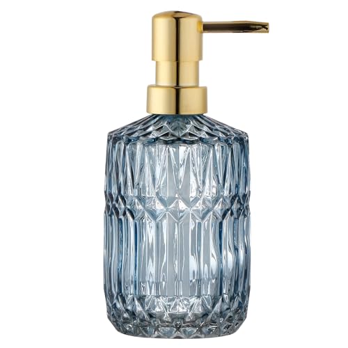 YunNasi Tvålpump i glas med pump, påfyllningsbar flytande handtvålsdispenser för badrumsbänk, diskho (Blå)