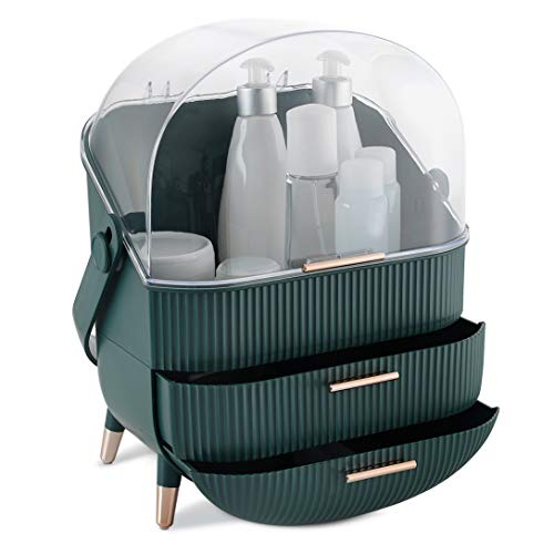 YOOLENS Sminkborsthållare med lock 360 roterande klar dammtät sminkförvaring för sminkbord badrumsbänk, grön