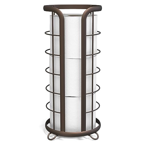 BROOKSTONE, toalettpappershållare i brons, fristående badrumsförvaring organiserare, minimalistisk förvaringslösning, modern och elegant design [Rymmer MEGA rullar]