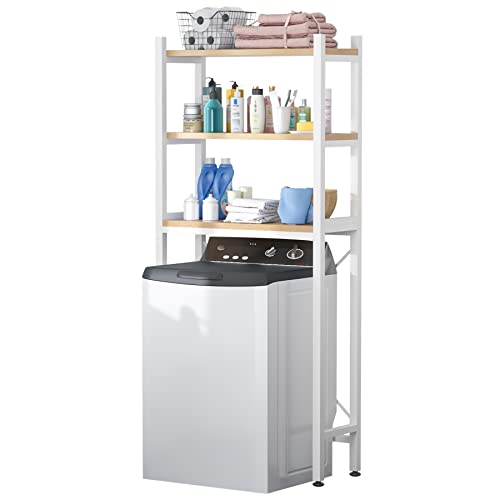MOYIPIN 3-nivåer över musselskalet tvättmaskin förvaringsställ platsbesparande badrumsförvaring ovanför toaletten, multifunktionell, bärande, stark, justerbar, vit