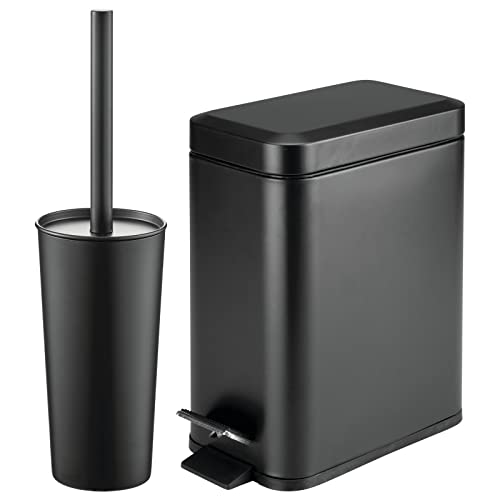 mDesign Fristående toalettskålsborste och hållare och rektangel stegpapperskorg papperskorg för badrumsförvaring – svart