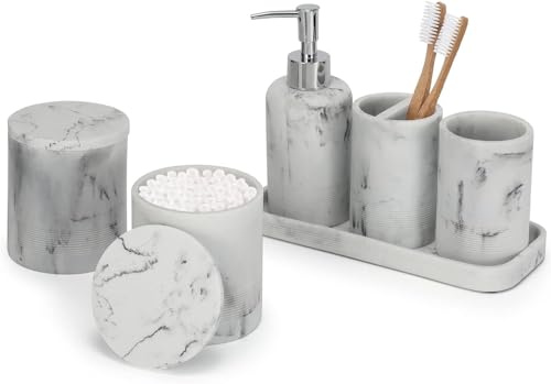 Zccz vit marmorlook badrumstillbehör set 6 st - tvåldispenser, 2 qtip hållare dispenser, tandborsthållare, sminkbricka, badrumsglas - bänkskåp sminkförvaring - Accessoire Salle De Bain