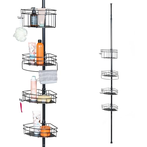 bremermann Teleskop-hörnhylla, 4 korgar, 2 krokar, teleskopstång upp till max. ca 290 cm, höjdjusterbar duschhylla, klämhylla utan borrning, badrumshylla (svart)