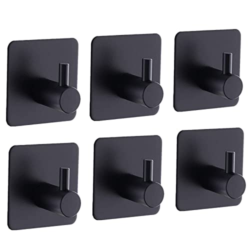Gooandi Handdukskrokar utan borrning, 6 stycken krokar, självhäftande, väggkrokar, dörrkrokar, badrumskrokar, självhäftande krokar, matt, perfekt för badrum, toalett, kök (svart)