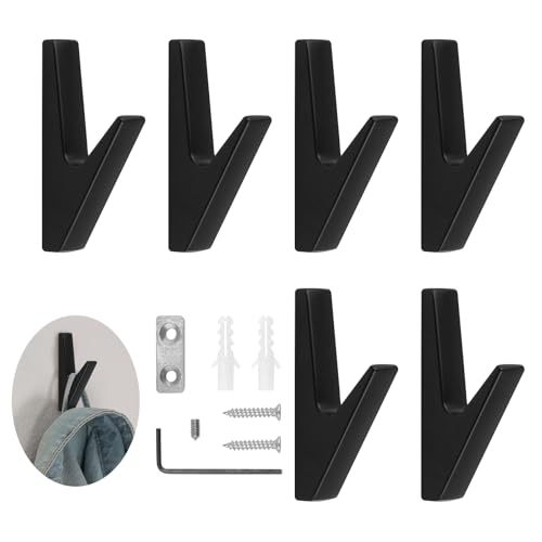 MABAHON 6 set badrumskrokar, svarta handdukskrokar för badrum, zinklegering hattkrok, svart klädkrok för vägg, dörrkrok lastkapacitet upp till 20 kg (mattsvart)