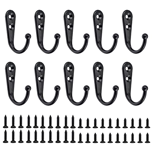 Namn: 10 stycken retro-enkla krokar, med 40 stycken platta huvudskruvar, badrumskrokar, klädkrokar med hål, miniväggkrokar, för upphängning av hattar, handdukar, väskor, nycklar (svart)