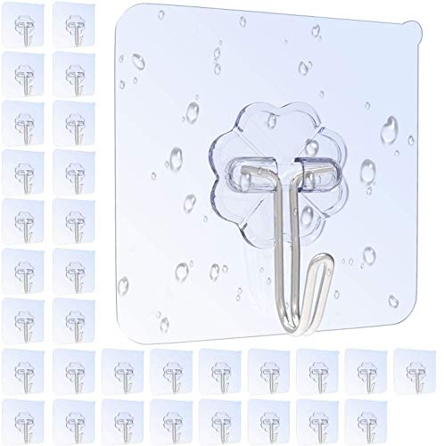 Karrong självhäftande krokar Paket med 32 max 8 kg, genomskinliga handdukskrokar utan borrning Självhäftande krokar Badrumskrokar för badrumskök
