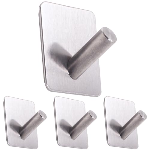 RICOO Krokar självhäftande rostfritt stål, självhäftande, MH021-4, set om 4, självhäftande krokar, väggkrokar, silver, krokar för limning, handdukskrokar utan borrning, badrumskrokar