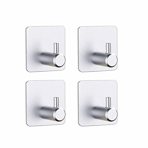 Självhäftande krokar 4-pack, rockkrokar, starka klibbiga krokar, 3M kommandokrok, för att fästa krokar dörrkrokar, badrumskrokar, väggkrokar, kökskrokar, sugkrokar (Silver)