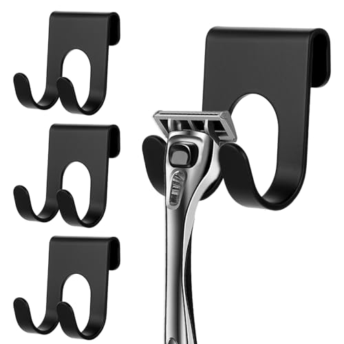 JJUNW 4 stycken rakapparat dusch, rakhållare dusch utan borrning, vattentäta självhäftande badrumskrokar för badrum kök arrangör (svart)