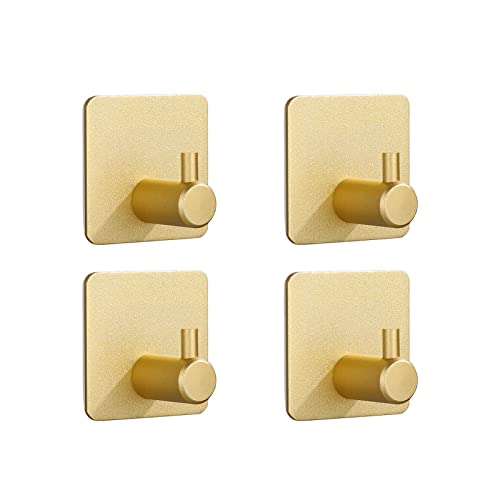 SZWLJ Självhäftande krokar 4-pack, rockkrokar, starka klibbiga krokar, 3M kommandokrok, för att fästa krokar dörrkrokar, badrumskrokar, väggkrokar, kökskrokar, sugkrokar (Guld)