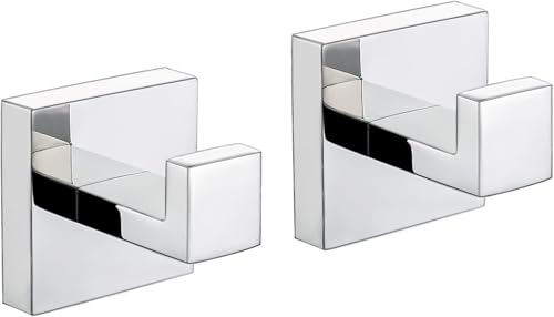 YUET handdukskrok krokar badrumskrokar väggkrokar rostfritt stål 304 för handduk, badrock, rockkrokar badrock kök badrum handdukshållare, väggmontering med skruv, 2 stycken (krom)
