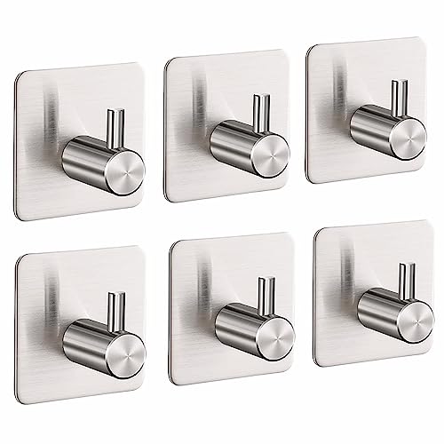 Krokar Självhäftande Handdukskrokar, 6-pack Handdukskrokar utan borrning, Rostfritt Stål Självhäftande Krokar, väggkrokar, badrumskrokar, kökskrokar, krokar för badrum, toalett, kök, kontor(Silver)