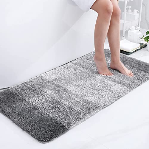 Homaxy Mjuk Badrumsmatta 60 x 120 cm, Halkfri Tvättbar Fluffig Hög Lugg Mikrofiber Absoranderande Duschmatta (Grå)