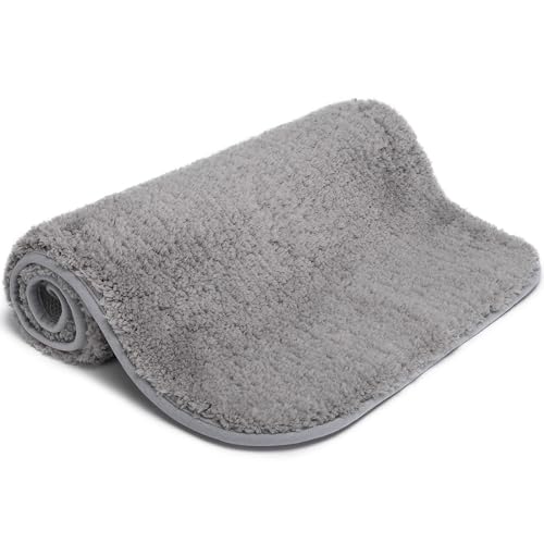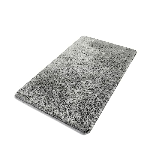 Homaxy Mjuk badrumsmatta 51 x 76 cm, halkfri, tvättbar badmatta, fluffig hög lugg, mikrofiber, absorberande badrumsmatta, duschmatta (grå)